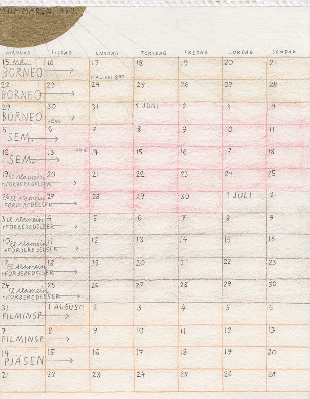 En kalender ritad av Cilla Ramnek. Jag minns hur stressad jag var på den tiden. Men denna kalender gav dagarna ett skimmer.